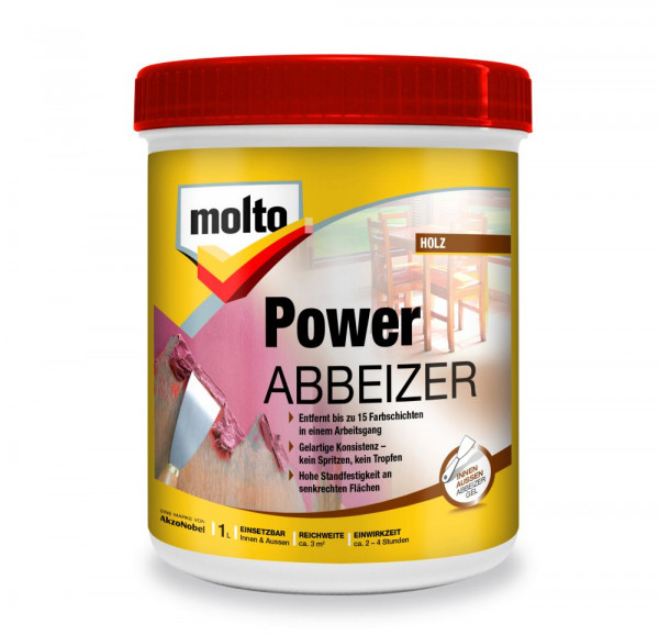 - Molto Power Abbeizer entfernt bis zu 15 Farbschichten in nur einem Arbeitsgang: kraftvoll, unerbittlich und effizient.