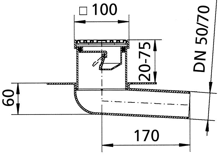 Upmann Balkon-und Terassenablauf DN 50 mm waagerecht