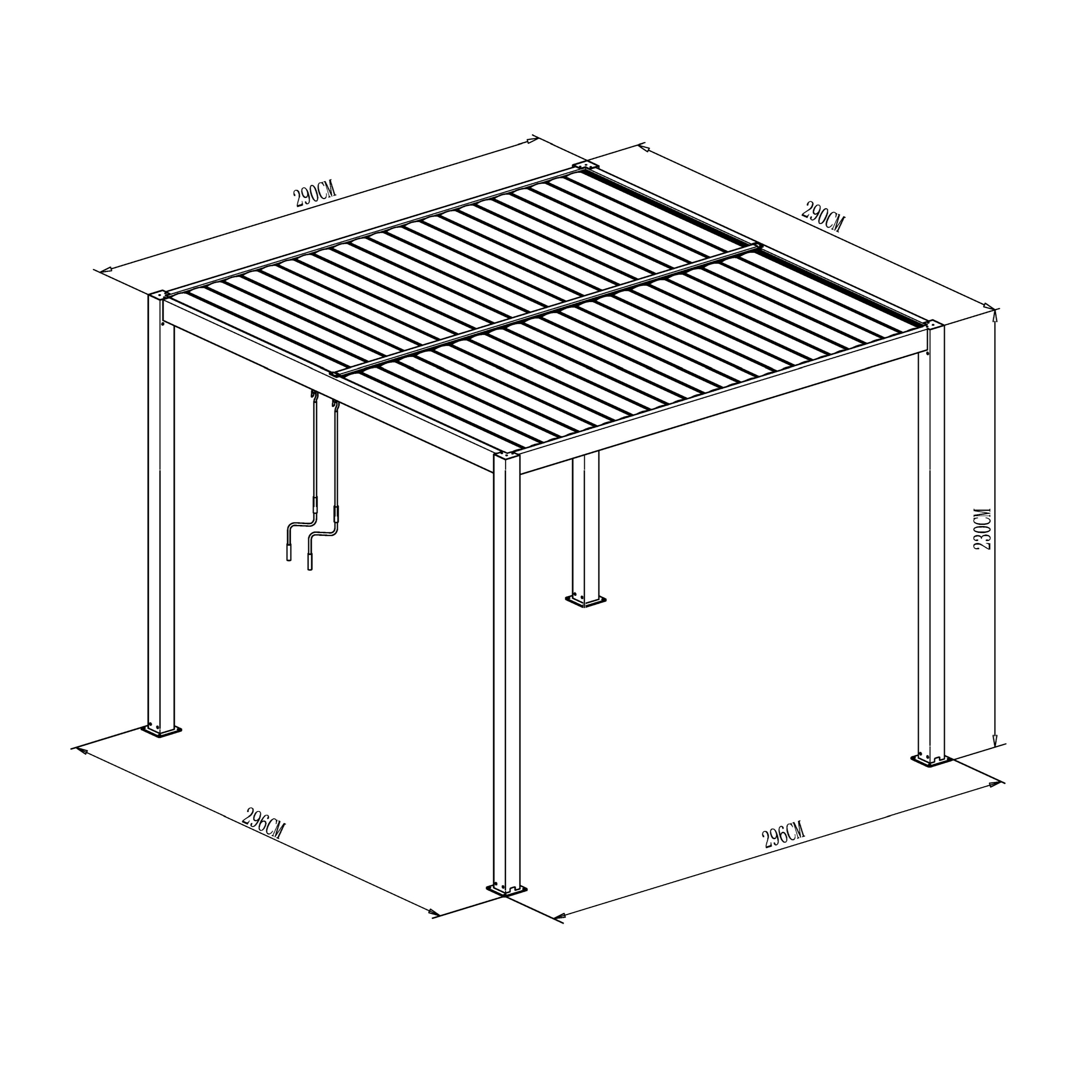 Robuste Konstruktion aus pulverbeschichtetem Aluminium und verstellbaren Lamellendach, innovativem Entwässerungs-System, witterungsbeständig und äußerst langlebig, zwei Dachsegmente welche individuell geöffnet, gekippt oder geschlossen werden können.