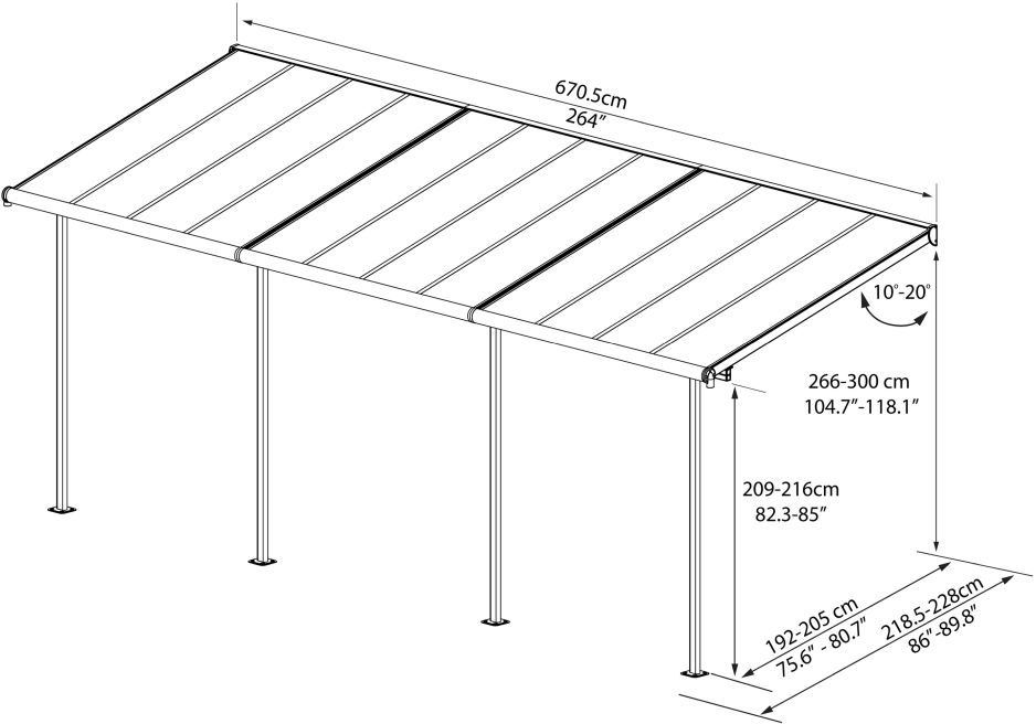 Produktinformationen "Palram Terrassendach Sierra, 670 x 230 x 257-283 cm, Grau"