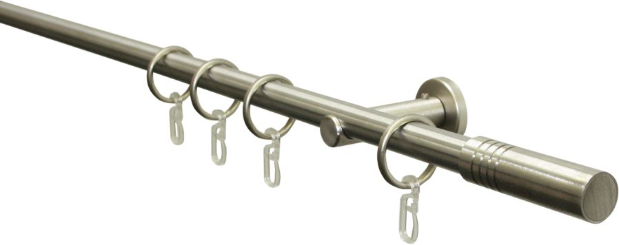 - Metall, komplett mit Metall-Endstücken, -Trägern, -Ringen, mit Faltenlegehaken und Befestigungmaterial, ab 240 cm mit 3 Trägern, Trägerlänge (Wandabstand der Gardinenstange) 5,5 cm Anzahl Gardinenringe mit Faltenlegehaken 120 cm = 12 Stück Anzahl Gardinenringe mit Faltenlegehaken 160 cm = 16 Stück Anzahl Gardinenringe mit Faltenlegehaken 200 cm = 20 Stück Anzahl Gardinenringe mit Faltenlegehaken 240 cm = 24 Stück