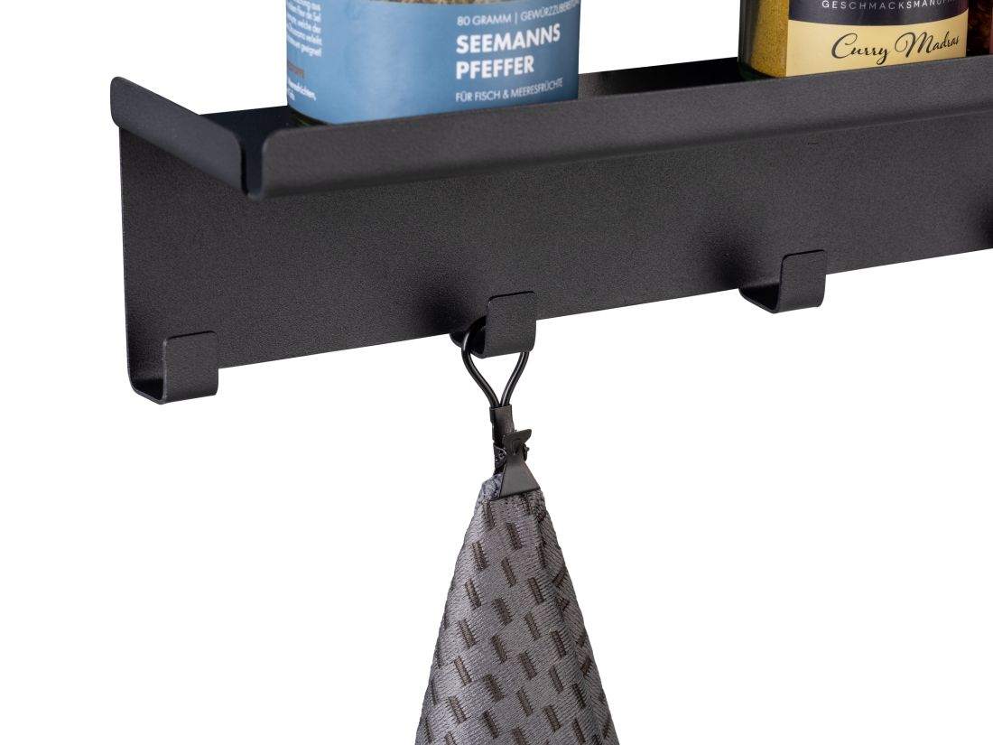 So können Sie Ihre Textilien ordentlich und griffbereit aufbewahren oder feuchte Tücher zum Trocknen hygienisch aufhängen. Das nützliche Quartett passt durch das elegante Schwarz auch optisch in nahezu jede Küchen- oder Badeinrichtung.
