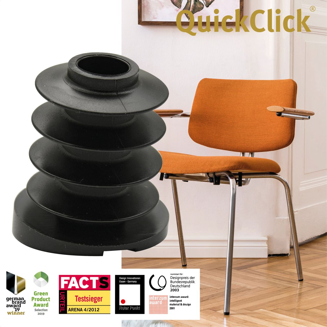 Die intelligente Lösung: QuickClick - das erste Gleit- und Stopp-System mit austauschbaren Einsätzen und Aufsätzen! Dieses System ist so einfach wie genial. Das Clevere daran: Ein Basisteil aus hochwertigem Kunststoff wird 1 x am Möbel befestigt und dient als Aufnahme für verschiedene Gleit- und Stopp-Einsätze. Diese können nach Bedarf ausgewählt, eingeklickt oder aufgeklickt und jederzeit ohne spezielles Werkzeug ausgetauscht werden. Das schützt Möbel und Böden - dauerhaft!