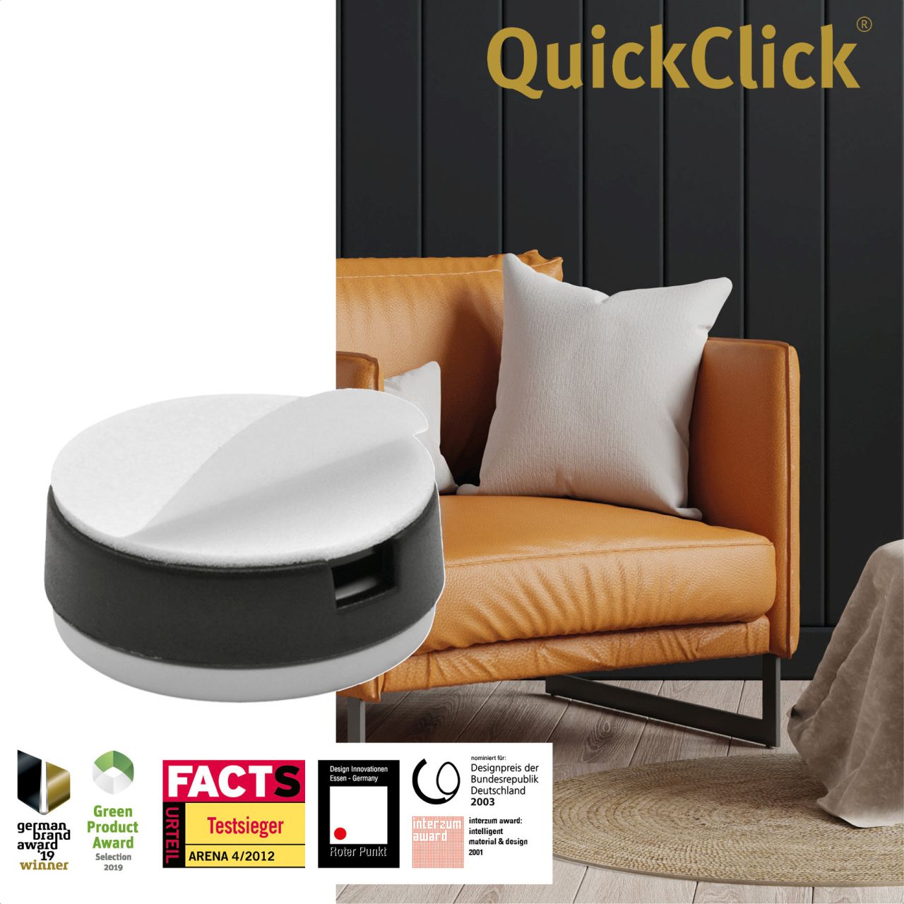 Die intelligente Lösung: QuickClick - das erste Gleit- und Stopp-System mit austauschbaren Einsätzen und Aufsätzen! Dieses System ist so einfach wie genial. Das Clevere daran: Ein Basisteil aus hochwertigem Kunststoff wird 1 x am Möbel befestigt und dient als Aufnahme für verschiedene Gleit- und Stopp-Einsätze. Diese können nach Bedarf ausgewählt, eingeklickt oder aufgeklickt und jederzeit ohne spezielles Werkzeug ausgetauscht werden. Das schützt Möbel und Böden - dauerhaft!