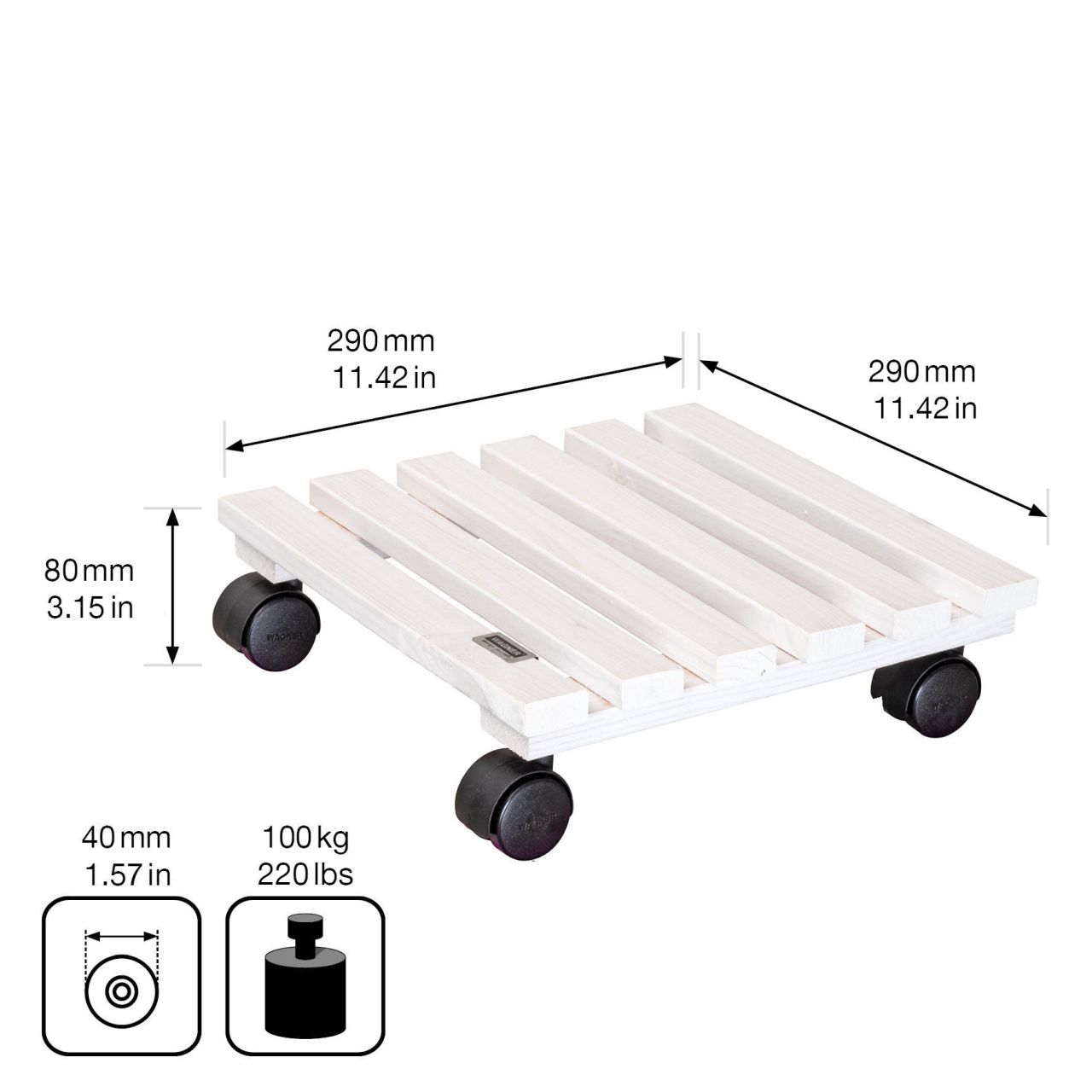 Der Roller der ideale mobile Untersatz für alle gängigen Pflanzgefäße kleiner und mittlerer Größe. Vier wendige Doppelrollen aus hochwertigem Kunststoff verleihen ihm beste Laufeigenschaften auf allen robusten Boden-Oberflächen wie z. B. Teppich oder Kork.