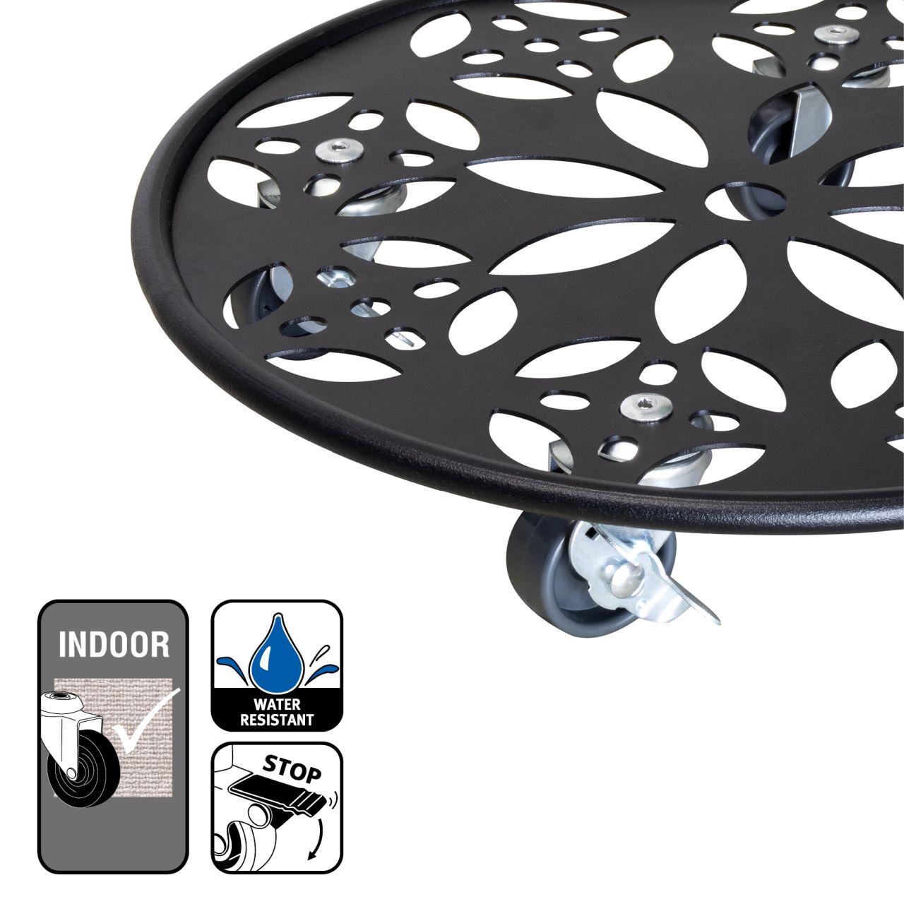 Der Pflanzenroller passt durch sein zeitloses Design zu jeder Einrichtung in Haus und Büro. Vier tragstarke Apparaterollen verleihen ihm beste Laufeigenschaften auf allen weichen, robusten Bodenbelägen überall im Innen- und Außenbereich und machen das Bewegen mittelgroßer Pflanzen und Pflanzgefäße leicht und komfortabel.