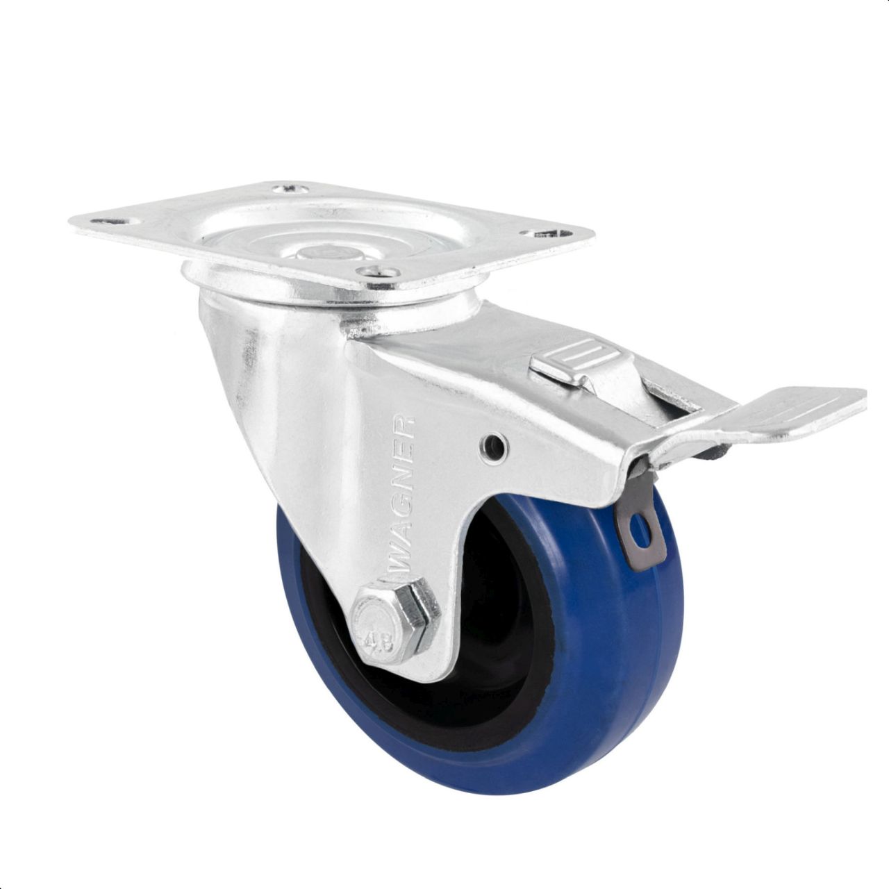 - Wendige, softe Lenkrolle mit Anschraubplatte und Feststeller, blau/schwarz