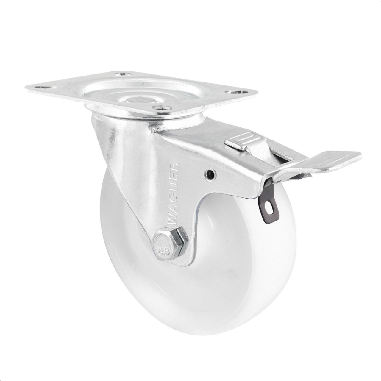 - Wendige Lenkrolle mit Anschraubplatte und Feststeller, weiß