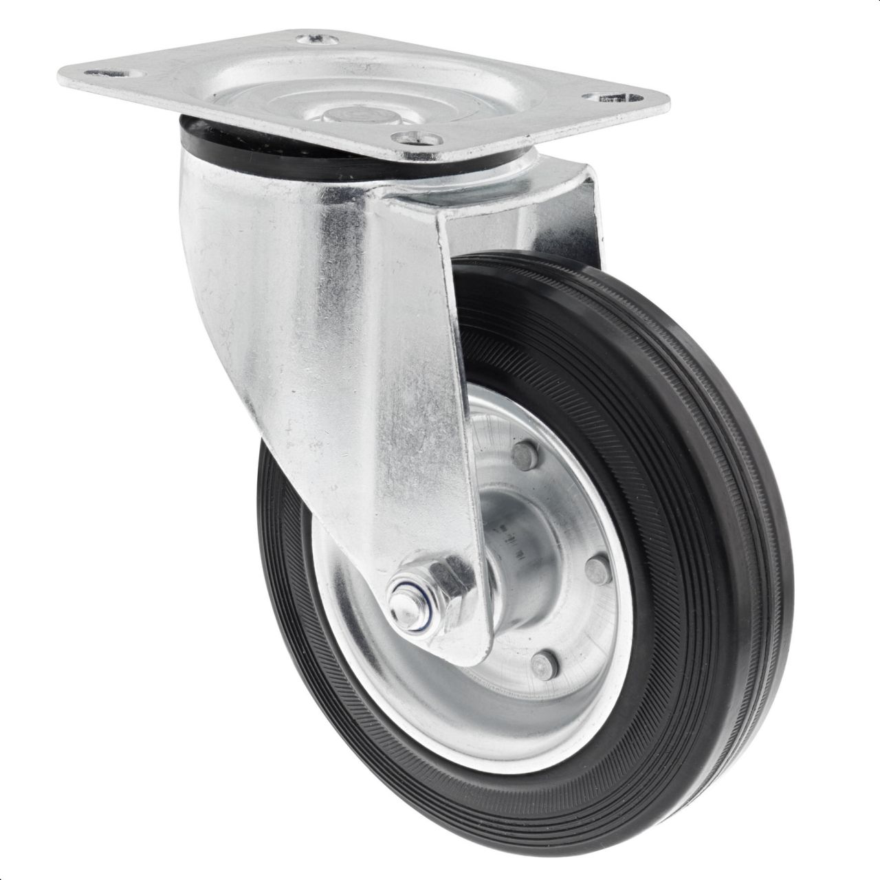 - Gehäuse, Felge und Anschraubplatte aus massivem, verzinktem Industriestahl, Rad aus Vollgummi, softe Lauffläche für empfindliche und versiegelte Boden-Oberflächen